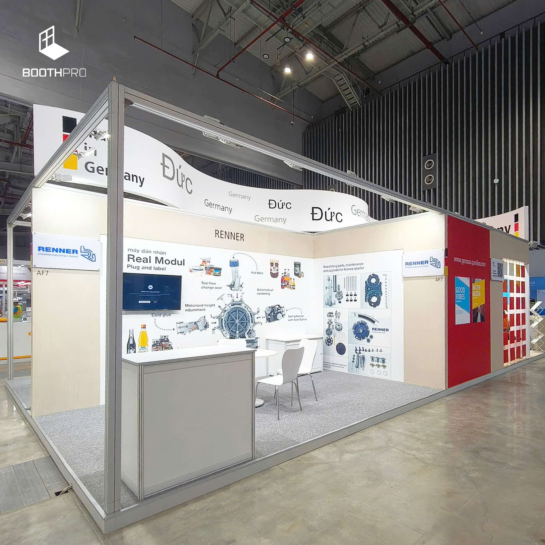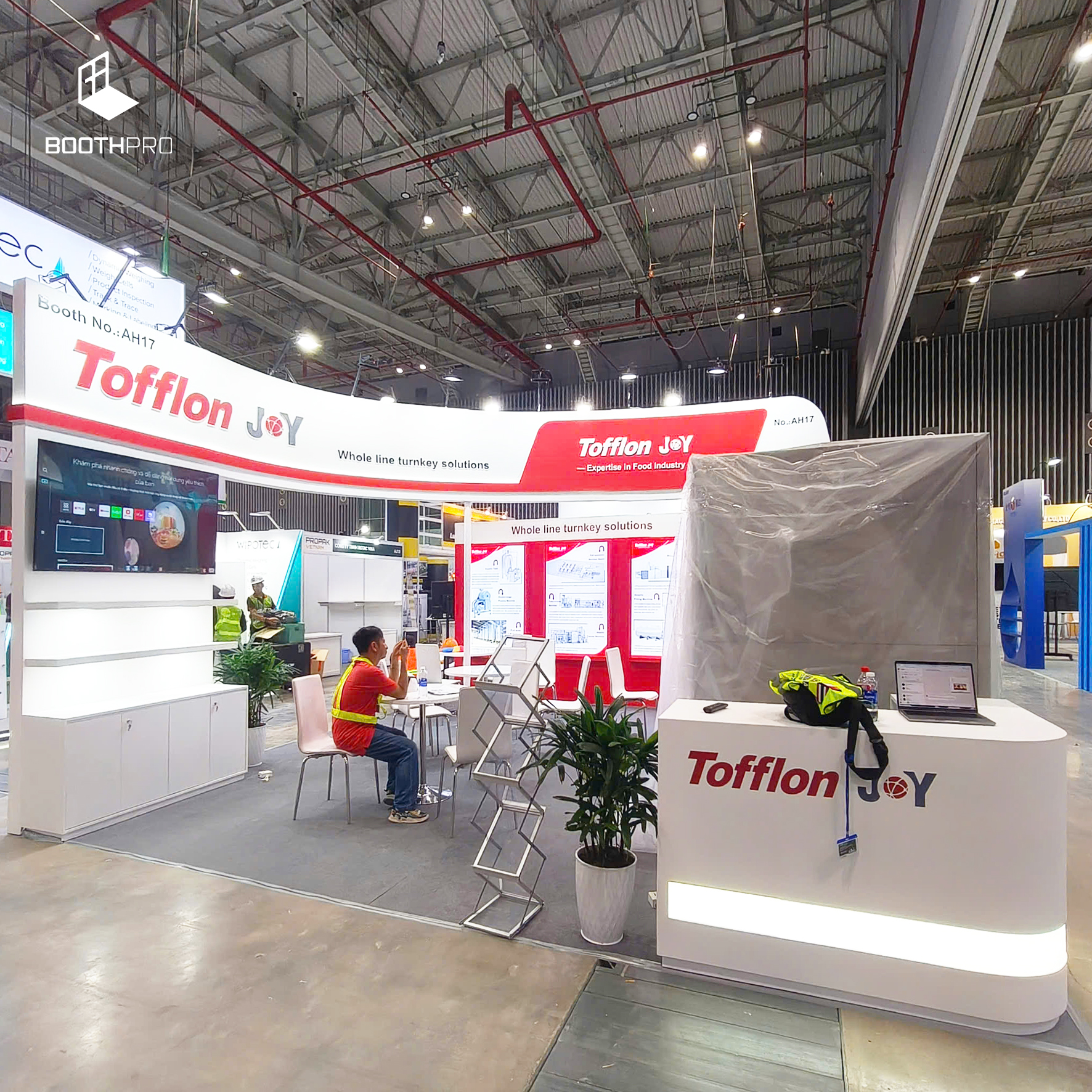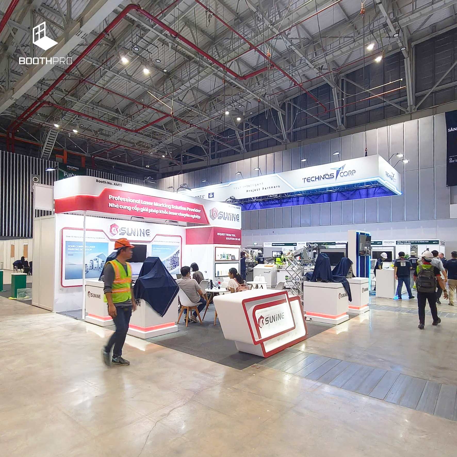 🛠️ Thi công gian hàng triển lãm đúng tiến độ, đúng kỹ thuật.